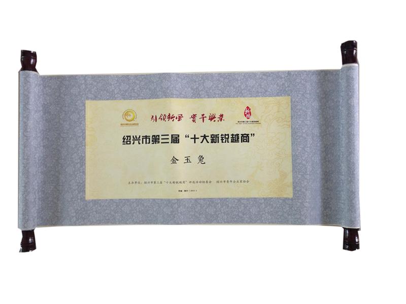 - 董事長(zhǎng)金玉兔榮獲"紹興市第三屆十大新銳越商"