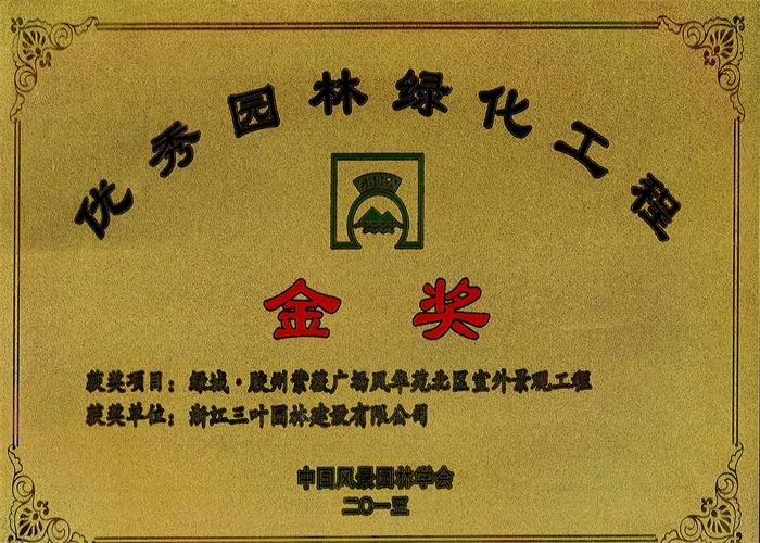 - 三葉園林喜獲"2015年度中國(guó)風(fēng)景園林學(xué)會(huì)優(yōu)秀園林綠化工程金獎(jiǎng)"